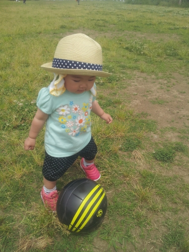 家でも外でもボールをけって歩いてます(笑) ボールを追う姿は将来を想像させます
