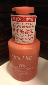 お風呂がシャワーだけでもこちらがあれば湯あがりポカポカ★女性の約80%が悩む冷え症の女性に向けた温活ボディソープ/>『HotLife』1,000円(税抜き)体を温める入浴法で使われる「エプソムソルト」を10%配合し、ボディソープで洗うだけなのにエプソムソルト浴したようなポカポカ気分になれます!発汗美容法 エプソムソルトエプソムソルトは必須ミネラルの1つで、、塩ではなく人の体や天然温泉にも含まれる、硫酸マグネシウムという成分です分子量が小さく、他の成分より角質に浸透するため、入浴剤によく使われており、欧米では家庭でも広く親しまれています◆うるおいを守るアミノ酸系洗浄成分ベース(ココイルメチルタウリンNaラウロイルメチルアラニンNa)&保湿成分(ハチミツアロエベラ液汁スクロース)◆こだわり6FREEラウリルラウレスフリーパラベンフリーシリコンフリー鉱物油フリーエタノールフリー着色料フリーきめの細かい泡ですタオルは使用せず直接お肌に塗ります塗ったそばからじわっと温かくなってきました全身に塗ったら全身がポカポカと温かくて、寒がりな私は夏でもシャワーの温度が44度なのに、温かいからと43度に下げたほどです!(私にとってこの1度の差は大きいのです)洗い流したあとのお肌は、保湿成分も配合されているのでしっとりでした鎖骨、わきの下、脚の付け根、膝の裏、おへそ、と5つのリンパ節にむかって泡マッサージをするとより効果的なので、しばらくやってみようと思いますペリカン石鹸ファンサイト参加中株式会社ペリカン石鹸 続きを見る ['close']