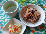 ps//blogimgs132fc2com/n/a/o/naoyaman20/sDSCF6837jpg" alt="" width="460" height="345" /> 玉露園 お徳用梅こんぶ茶 我が家に常備してるこんぶ茶ですが、よく使うので大容量がありがたい♪ 梅風味、今の時期にぴったりですね^^ 玉露園ファンコミュニティファンサイト参加中 フリーズドライの梅の量が結構多いんです!!! 別によって入れたわけじゃないですよ 普通にぱらぱらっと袋から出してこのバランス、なかなか食欲をそそります さて、食事の一部ですが、、 どれに使ってるかわかりますか??? 正解はーーーーこちら 混ぜご飯に使ってみました! あと、ちりめんとゴマをプラス♪ ↑ うちのちりめんは冷凍中 まだちょっと凍ってる? 熱々炊き立てご飯に混ぜてみましょう ここで一度味を確認してみたのですが、塩加減もちょうどいい感じ 特に塩を足さなくても大丈夫でした 旨味があるからかな 仕上げにあおさをぱらぱらっと 磯の香りも加わっていい感じ♪ (炊飯器も新しくしたし、ご飯もおいしく炊けるようになったよーーー!) 飲み物はあったか梅こんぶ茶で 簡単な割には旨味たっぷりかも♪ 切り干し大根は実家からお正月にもらって帰ったやつですね 今期のものなので、まだまだ色が真っ白できれいでした これも、乾燥したら保存袋に入れて冷凍中 ←を、もらった(笑) 思わずおかわりしたくなる混ぜご飯でした 材料の下ごしらえなし!の簡単梅こんぶ茶ご飯でした 続きを見る ['close']