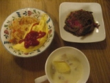 オムライス 牛肉のたたき クリームシチュー オムライスはいつも炊飯器でつくります 玉ねぎ人参をみじん切りにして バターマーガリンなどで炒めます ハムベーコンコーンピーマンは そのときの冷蔵庫と相談していれます 私はベーコンとコーンが多いかな? 生協さんの冷凍コーンがおいしいのです! お米をといで普通より少し少なめの水加減にします コンソメキューブを二合に一つくらいでいれます 先ほど炒めた具を入れて炊きます 炊きあがりにケチャップを混ぜて ケチャップライスの出来上がり! お好みでケチャップ入れないで 卵で巻いてもおいしいですね♪ 玉子は普通に巻いたり、 スライスチーズをいれてチーズスクランブルにして ご飯にのせたりしています 娘達は断然巻く派で ケチャップで名前を書いてほしいみたいです(^^) 豚肉の生姜焼き 厚揚げ小松菜エノキの煮びたし ウィンナピーマンしめじ炒め ワカメスープ コロッケ 茄子の煮物 最近コロッケつくるとこの茄子の煮物が セットになっている 義父母と一緒にたべました! コロッケはこの三倍くらいあったかな? たしかあとサラダくらいだったけど みんなで美味しく食べられて良かったです^^ クリックすると順位に反映されます応援していただけると嬉しいです^^ おうちごはん ブログランキングへ 人気ブログランキングへ くるみとメープルシロップ!大好きな二つの組み合わせが楽しみです!! 【モニター 初募集です!!】今話題の【メープルシロップくるみ】50名モニター募集 続きを見る ['close']