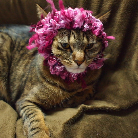 男子猫に間違われることが多いので、おにゃのこっぽくしてみました でも、ホンニンは不満?(_;)