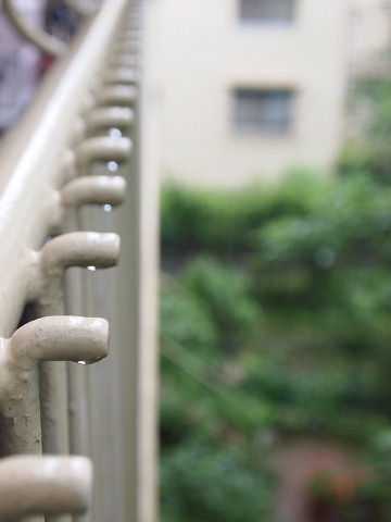 ベランダの手すりに雨粒が光ってました 触れたら、ポロンポロンとシロフォンみたいな音がしそう