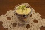 ②容器におまつりこまちサラダ味→あんこ→バニラアイス→おまつりこまちサラダ味→あんこ→バニラアイス の順に重ねていく