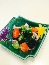お友達からいただいた新鮮野菜を使って作ったおかず達頂き物のおくら、トマト、きゅうり夫の釣ってきたイカそれに家にあったわかめを加えて酢の物に新鮮じゃがいも、トマト、そして浅漬けにしたきゅうりじゃがいもは甘くて、そのままでも美味しいから、マヨネーズは少なめでおにぎりは友達に教えてもらった蕎麦茶をいれて炊いたご飯であとはお味噌汁と、イカのゲソ豆板醤炒めでささっといただきました美味しかったよ、ありがとう 続きを見る ['close']