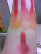 興味があったので、入手しましたクレンジングもできるとあったので、現在使用中ですが、口紅を落としてみました上段3本が、左:ミヨシの石鹸、中央:
