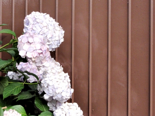 大きなアジサイは重たくて疲れてしまうのかも 壁や塀に寄り添ってますよね