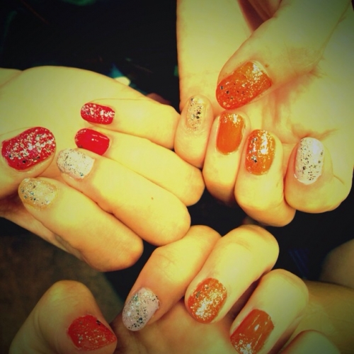友達とお揃いで秋っぽいネイルに挑戦者してみました(^^)!