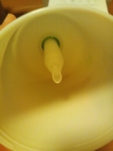 これを、勢いよく、先ほどのさかさまにセットしたパックにかぶせる