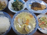 >ごちそうさん アサリの味噌スープ(^^)へん 先日、3番目の妹におすそ分けしたお味噌 妹が味噌スープをばうまそうに作ってたんで、さっそく作り方を聞いて、真似マネしてみたですよん 作り方は、アサリと残り物野菜をぶっこんで、 ちなみに、わたいは、ニンジン、タマネギ、白菜の芯を ぶち込んだデス で、味噌を溶いて、溶き卵を流しいれればできあがりなり そんな、今日の夕飯なり スナップエンドウの煮物に、モヤシとニラのおひたし 手前右側は、キャベツとニンジン、キュウリ、タマネギの コールスローサラダ 砂糖とレモン汁、マヨネーズとフレンチドレッシングを 混ぜ混ぜしたので和えておりやんす ああ、今日もお… 続きを見る ['close']