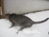 この寒いなか、もじゃ、どうしてるかと 外に出ようとするも、ドアが開かぬ