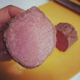 美味しくて手軽に食べられるローストビーフの紹介ですびっくりドンキー ローストビーフ195g(ローストビーフ180g、ソース15g)以前びっくりドンキーでも提供されていたローストビーフが、手軽にネットで買えるように真空パックなので、賞味期限も製造より365日(冷凍保存)という使いやすさ18℃以下で保存なので、冷凍庫に入れて使いたい時にササッと取り出せます真空の袋から出すと、ごろンお肉の塊は、迫力ありますね常温で自然解凍させ、いざ包丁を丁寧に入れると、程よい固さでスパッとカット出来ました パカッっと広がった切り口に、吸い込まれそう絶対美味しいでしょ(^q^)などと、独り言を言いながらスライス赤身のはバランスが程よく、息子も良く食べてくれそうですサラダの上にのせてみました専用のタレのお陰でさっぱりと葉もので巻いてあっさり食べられした表面の味付けが程良いので、そのままでもお箸がすすみました肉好きにはたまりません下記バナーから購入出来ますパーティーや、イベントまた特別な日にこれからの時期、バレンタインdinnerにも良さそうですね 続きを見る