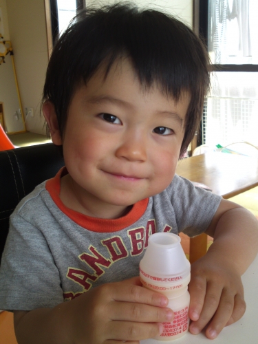お昼寝後のヤクルトにご満悦の息子くんやんちゃでいたずらばかりなのに、ママはこの笑顔にメロメロなんです