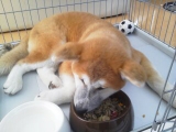 昨日の夜、ご飯食べるのに時間かかってるなと思っていたのですが、ついに、フタちゃん、夏バテしたみたいですさすがに、クーラーかけました温度29℃、湿度50% megすけはレッグウォーマー装着散歩から帰って、ずーーーーーーーっと寝ていますケージの扉を開けても、出てこようとしませんご飯を持っていけば、言わなくてもオスワリして待っているのに、今日はオスワリをしません実家にいた秋田犬アキちゃんも、夏は