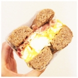 麻布十番で用事があったので帰りに白金へ!ずーっと行きたかったマルイチベーグルでベーグルを買いました会社のオシャレな先輩のオススメのお店!しかも食べログ評価も高い店内は撮影禁止だったのでテイクアウトしたベーグルの写真を…かわいいクラフト紙の袋に入れてくださりました( ^ω^ )あ、うん、たぶんフツウのクラフト紙なんだけどお店がかわいいかんじだったので紙袋もオシャレに見えちゃいますわたしが注文したベーグルがこちら具は、エッグサラダと、生ハム!ベーグルは、プレーンや、オニオンなどいくつかの種類から選べますしかしながら…注文したベーグルの名前を忘れてしまいました…なんてこった(´`)全粒粉なのは覚えてるんだけどな、でも、すごくスパイシーな粒がまぶされていてすっごくおいしいベーグルでした!具も、ぎっしり!!!!!これでもか!ってくらいに大盛りで盛ってくれます\(^o^)/うれしーいもちろん味もおいしかったです!また機会があったら行こうっと(o^^o)