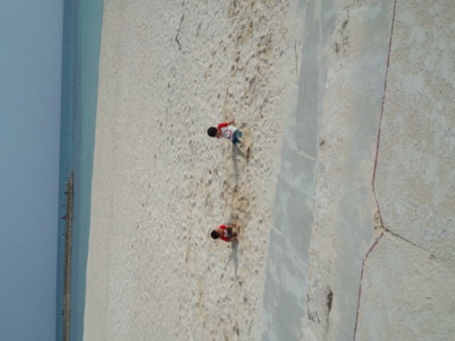 今年初めての海♪♪♪ 砂浜で砂遊びしてる息子たち‥2人で何話してるのかな??(^^) 沖縄のキレイな海と空でこっそりパシャリ
