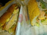 野菜のサブウェイに旦那さんと行ってきました ()❤私は10年ぶりで旦那さんは初SUBWAYなんです ( ̄▼ ̄;14時頃行ったのですが店舗がビジネス街にある為、サラリーマン方やOLさんでワイワイでしたスタッフさんはみんな『研修』のプレートを胸につけてました ()ガンバレ左がクラブハウスサンドイッチ 右がえび&紅ずわいがにのサンドイッチです♪どちらも今年の1月16日から新発売のPREMIUMSANDWICH♪私は店内での料理写真撮影がニガテなので急いで撮りました ( ) クラブハウスサンドイッチに合うパンはハニーオーツ(オーツ大豆ハチミツ)えび&紅ずわいがにサンドイッチに合うパンはセサミとスタッフさん♪ おまかせしました ()軽くトーストしてもらったのでパリパリのサクサク♪あふれる具だくさんで食べ応えたっぷり♪大満足でした ()❤ポテトも美味しくてオススメです (>_ 続きを見る