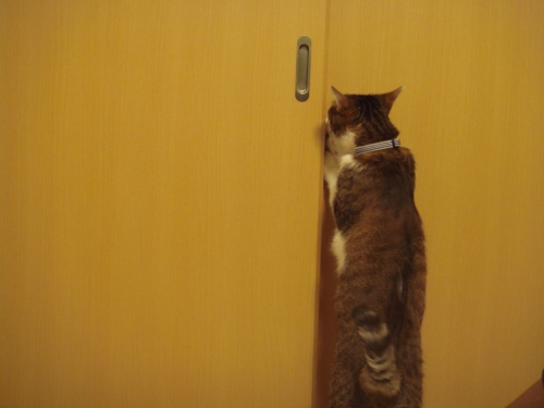 我が家の愛猫みゅう♂は、今まで扉を開けてほしいときは「ニャー」と甘えていました ところが、ある日偶然自分で扉を開けることができて以来、背伸びをしてがんばるように