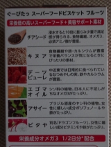 /iid89579874857e47a19b403f/m5031c64c2f990/k1/s0/" rel="nofollow">ナリスアップ コスメティックスファンサイト参加中 ぐーぴたっ スーパーフードビスケット ぐーぴたっ スーパーフードビスケット フルーツ(左)、ナッツ(右) 各、3枚×3袋 200円(税抜) 株式会社ナリスアップ コスメティックスさんからご提供いただき モニターさせていただきました✿❀ぁりが(。◕ˇ∀ˇ◕人)㌧❀✿8 創業80年を越える技術力をもつナリス化粧品の子会社である 株式会社ナリスアップ コスメティックスさんは 毎日のケアに必要な化粧品や体の内からキレイをつくる 食品もお届けしている企業さんなのです アタクシ、過去にコンビニで働いていた頃は 短い休憩中によく「ぐーぴたっ」クッキーの お世話になったものですが、今回お試しさせていただいたのは 空腹を満たし、かつ栄養価が高く+美容サポート素材の パワーアップしたぐーぴたっです ぐーぴたっ スーパーフードビスケット ナッツ ★スーパーフード+美容サポート素材 チアシードキヌアデーツピューレエゴマオイルアーモンドカカオニブ配合 ★栄養成分オメガ3を1/2日分配合 ★1日の不足量補給:カルシウム(100mg)、鉄(20mg) ★女性に嬉しい成分配合:食物繊維(40g)、ビタミンE(20mg) 香ばしいナッツ風味です ぐーぴたっ スーパーフードビスケット フルーツ ★スーパーフード+美容サポート素材 チアシードキヌアデーツピューレエゴマオイルアサイーピタヤ配合 ★栄養成分オメガ3を1/2日分配合 ★1日の不足量補給:カルシウム(100mg)、鉄(20mg) ★女性に嬉しい成分配合:食物繊維(40g)、ビタミンE(20mg) やさしい甘みのフルーツ味です 嬉しいのは、体内で作り出すことができない必須脂肪酸である オメガ3が1/2日分配合されていること アタクシ、たまにエゴマ油を摂取しておりますが ぐーぴたっならもっと手軽に摂取できるんですね(゚▽゚) 1箱に3枚×3袋入っています 1袋あたりのカロリーは ナッツは、57.0kcal フルーツは、56.3kcal 小腹を満たすわりに低カロリーでウレシー♥ 旦那ちゃんがお休みの日は二人でドライブに出かけることが多いんです 山に出かけることが多いので、お腹が空いても お店が見つからないことも多々あります この日はぐーぴたっをお供にお出かけなので安心です フルーツはいちごのような甘い香りと味がするって旦那ちゃん 適度な歯ごたえと粒つぶが食べてるという満足感を与えてくれます ナッツ めっちゃ香ばしいですアーモンドの香りでしょうか、うまし! ぐーぴたっとミネラルウォーターで 小腹を満たして、快適なドライブができました ぐーぴたっ スーパーフードビスケットのお気に入りポイントは 摂取しにくいスーパーフード等が おやつ感覚でそのまま食べることで摂取できる点です ティータイムや旅のお供にオススメ♪ 続きを見る ['close']