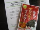 大掃除も終わり、ほっと一息ゆっくりとした年末です次の日を考えずに過ごす夕飯時にちょうどいい『海苔と紀州梅のはさみ焼き』をお試しさせていただきました山本海苔店ファンコミュニティファンサイト参加中見た目は普通の海苔なのですが、2枚の間に梅が挟んであって丁度よい塩気がおいしい晩酌のおつまみに最高です!美味しいと思うのは大人ばかりではなくうちの子供もつまみに来ますさてさて、山本海苔店さんといえば「梅の花」ですあのオレンジ色の缶を見ればきっと「知ってる」という方もおおいはず頂きもので食べたことがあるのですが、美味しい海苔です何を差し上げたらよいのか分からないようなご年配の方への贈り物にお勧めです同封のパンフレットを見て「おつまみ海苔」は 同じ年代の方に送りたいと思う商品です今回のモニター品と同じようなのり2枚で具材をサンドしているんですうに味とか、贅沢でおいしそう♪海苔はスーパーでお安いのが購入できますが、お値段出すとやっぱり違います贈り物には年代を選ばずにいいですねこのたびは山本海苔店さま、モニプラさまありがとうございました 続きを見る ['close']