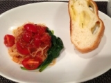 ミニトマトを加えて、ブルスケッタとカッペリーニを