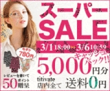 『公式スーパーSALE!!』 3/01 1800 ≫ 3/06 1059 まで◎全品送料無料◎すぐ使える5,250円以上お買上げ⇒1,000円OFF◎すぐ使える10,500円以上お買上⇒2,500円OFF◎購入者全員次回使える 5,000円以上お買上 ⇒1,000円OFF◎購入者全員次回使える 10,500円以上お買上 ⇒2,500円OFF上記クーポンでMAX5,000円キャッシュバック!!◎春の先取り福袋◎お得な上下セット販売◎レビューを書いて50ポイントGet盛りだくさんのお買い得SALE!! URLhttp//titivatejp/project/supersale0303/詳細はこちら欲張りな女性が楽しめるアーバンカジュアルなセレクトSHOP!ティティベイト【titivate】公★式スーパーSALEの告知お手伝い!! ←参加中 続きを見る ['close']