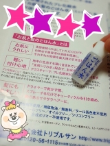 訪問ありがとうございます♪モニターをさせていただいたのでご紹介させていただきます(^^)今回はこちら♪ごはん水!!インパクトのある名前ですね(笑)プレ化粧と言って、洗顔後の化粧などをつける前につける化粧水ですプレ化粧水というものを初めて使いました!名前の通り、髪にも使えるそうです! ^^お風呂上がりにささっと肌と髪につけれるのがいいと思いました★肌につけた感じは、スーッとすぐに入ってって乾くとさらっとした感じ♪量が少なかったのでもうなくなってしまったんですが、もう少し使ってみたかったです(´`)ありがとうございました♪株式会社トリプルサン ファンサイトファンサイト参加中 続きを見る ['close']