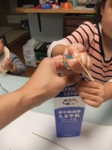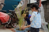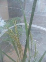 初夏から育ててきたバケツ稲も収穫の時期を迎えました残りの育成日記をやっと公開します7月後半、随分と穂が出てきたので鳥よけネットをかけましたまだまだオチビの穂で、かわいいです大きくなってくれるかな9月中旬に落水しましたまだ若干、青い穂があります干しているうちに、全体が黄金色になってきて楽しみ 10月4日に稲刈りをしました自宅にある園芸用のはさみで(^_^) 穂の部分だけ分けたら、10本くらいでしたこれからが意外と大変な作業が!!でも、頑張りましたよまず、脱穀牛乳パックに入れて口を挟んでぎゅーっと引き抜くこれだけで結構、うまくいくものですね簡単な作業なので子供達も喜んでやっていました下の子には、穂がいっぱいのところは力が足りず「出来ない」とつぶやきながら、でも、全部やりました そのあと、籾とりですこれはすり鉢に入れてすり棒で軽くこすりました子供の力だと米を砕くまでも力がないので、ちょうどいいみたいしばらくして殻を吹き飛ばして、また擦るを繰り返しお米だけに分けるのがちょっと面倒な作業でした 我が家で取れたお米はこれだけ少ない!でも、粒にすると結構あるんですよいつも食べているお米がいかにたくさんの稲に実ったものかわかりますね大切に食べなきゃですで、精米中量がすくなかったのでどんな瓶があるか家中を詮索したところ、サルサソースの瓶がいい感じ突き棒は菜箸です 時間がかかったけれど、ひとつひとつ根気よく作業しましたまだ、精米が足りず食べていませんが食すのが楽しみですまた、やってみたいな三幸製菓公式ファンサイトファンサイト参加中 続きを見る ['close']