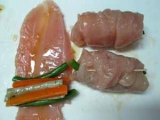★春の新商品★ピエトロドレッシング「しょうゆ麹オリーブオイル」を使った『行楽おかず』(→★)、見た目も楽しいこんなのはいかがでしょうか?鶏胸肉同様、パサつきがちなささ身も、ドレッシングとマヨネーズの効果で、ふっくら柔らかに仕上がりましたどちらも冷めても固くならず美味しいので、行楽弁当にはもってこいです(^o^)vささ身ロール(↑右)と牛肉ロール(↑左)、全く別物なので、どちらかだけでもいいと思いますそれぞれの材料と作り方を続けてご紹介してますが、今回焼く工程は同時に行いましたので、焼く時に使用した材料は牛肉ロールの方には明記していませんので、ご注意ください【ささ身ロールのしょうゆ麹マヨ焼き】 2人分◆材料◆鶏ささ身3本(200g)ごぼう25g位人参30g位インゲン豆3本ピエトロドレッシング<しょうゆ麹オリーブオイル>大さじ15(作り方文中参照)塩、こしょう適量オリーブオイル適量酒大さじ2ピエトロドレッシング<しょうゆ麹オリーブオイル>… 続きを見る ['close']