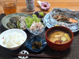 昨日の晩ごはん #鮭のホイル焼き #カニかまと大葉の蓮根サラダ #なすと豚肉の煮浸し #辛子高菜 #さつまいもとお揚げのお味噌汁 炊きたてごはん #ピオーネ & #シャインマスカット 鮭のホイル焼きは下に玉ねぎたっぷり、そして舞茸とオクラも一緒に包んで、シンプルに #クレイジーソルト …続きを見る