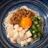 #クレイジーソルト で #ねばねばそうめん 昨日の #クレイジーソルトの日 の #テレワークランチ です😊 クレイジーソルトとごま油で味付け めんつゆは使ってません 🍴簡単レシピ🍴 そうめん 2束(100g) 納豆 1パック 長芋 50g オクラ 3本 卵黄 1個 ごま油 大さじ …続きを見る
