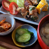 いつもの寄せ集めお惣菜ランチ 豚キムチ炒め きゅうり&トマト入りもずく酢 オクラの胡麻和え ポテトサラダ スイカ皮の中華風しらす和え 豆腐と玉葱とトマトのお味噌汁 シソの実のせ麦ごはんおにぎり スイカ&アメリカンチェリー お味噌汁には 新田ゼラチン様のコラゲネイドを加えて😊 …続きを見る
