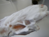 " rel="nofollow">ペリカン石鹸ファンサイト参加中 モニプラ様 株式会社ペリカン石鹸様 よりスーパーマリンコラーゲン洗顔石鹸のモニターに選んで頂きました ありがとうございます ぷるぷる豊潤洗顔ができるというスーパーマリンコラーゲンには 低温で浸透しやすいマリンコラーゲンが配合されています 豚のコラーゲンが良く使われますが、浸透温度は37度 マグロのコラーゲンは22度 スーパーマリンコラーゲンに使われるサケのコラーゲンは17度なんだそうです それぞれ浸透温度が違うんですねえ 石鹸はまあるいお正月にがかざるおもちのような可愛い形です この石鹸なんと泡立ちが通常の石鹸の4倍なんだそう 石鹸の元になる「脂肪酸」を一度分解して、デメリットのある成分を除いてから もう一度製造することで4倍の泡だちが作られるんです 手間がかかっていますねえ その泡立ちに加え洗顔ネットがついているのでもう怖いものなしですね どんだけ泡立てるんだ(笑) スーパーマリンコラーゲンは、パパイン酵素が古くなった角質汚れを浮かし 天然泥がしつこい毛穴汚れを吸着してしっかり洗浄してくれます さらにマリンコラーゲンとリピジュアがヴェールとなってお肌を守ってくれます 潤いを保ちながら透明感のある肌へと導いてくれます それでは早速使ってみました 開ける前からすでに香料の匂いがかなりしています これだけはちょっと苦手ですねえ ごめんなさいペリカン石鹸さん 匂い酔ったり痒くなったりするタイプなのですが これは石鹸によく使われそうなシャボン系の匂いでしょうか 是非無香料を作ってほしいですね 泡立てネットで石鹸をこすってもみもみしていると もちもちのもこもこ泡がいっぱいできました せっかくなので、ぬるま湯ではなく水で洗ってみましたが 水でも泡立ちはとてもいいですね どうですか? この泡触ってみたくなりますよね ちょっとケーキのように手に塗ってみました(笑) 洗っている間にも泡はつぶれて消えたりせずもちもちのまま 香りも泡立てたら気になりませんでした 洗いあがりもとってもしっとりさらさらといった感じです 洗いあがりの香りはやっぱり結構ありますね いい匂いなんですけどね 多分私のような匂いにアレルギーぎみな人は少ないとは思いますが これだけ泡立つとエイトリン(息子三歳半)が、 お風呂でもこもこ祭り状態になりそうですね 普段は液体の石鹸を泡立てて体を洗っているのですが もこもこもこもこ泡を作り続けるんですよね もう職人です よ!もこもこ職人といっておだてて 是非お風呂で泡立ててもらおっと 作りすぎそうなのが危険ですが 次回は顔に使用した感想を紹介しますね それでは 続きを見る ['close']