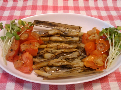 自給自足に憧れていて、マテ貝を潮干狩りした時におうちで作った「マテ貝のトマトバジル炒め」です 貝とトマトパワーで滋養強壮にもお勧めのレシピです
