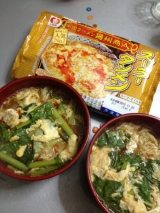シマダヤ タンタン麺とスーラータンメン の紹介です 今日 作ってみたのはスーラータンメン 作り方は とても簡単で、お鍋にスープを沸かしておいて 溶き卵を入れて 別鍋で麺を茹でます 麺が茹で上がったら どんぶりに麺を入れて スープとオイルをかけたら 出来上がりo(^▽^)o 我が家のは トッピングの小松菜の分量が多すぎたようで 存在感ありありですがσ(^_^;) ごま油がフワフワいい香り麺は細麺で トロミのあるスープとよく絡んで 一口一口にスープをいっぱい含んで食べられます(^o^) トロミがあるスープなので 冷めにくく最後の一口まで熱々で食べられました 食べ終わる頃にはじんわり汗ばむくらい、ちょい辛でした 旦那と私は大満足(#^^#) 子供には少し辛めのようでしたお茶をいっぱい飲んでました 次回は タンタン麺こちらもとっても楽しみです シマダヤのファンサイトファンサイト参加中 続きを見る ['close']