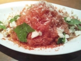 またまた生パスタを食べに行きました♪今回は、かき氷パスタ!?じゃーん!!!ん?よくわからないですか?では、アップ!トマトの冷製パスタなんですが、パスタソースを凍らせてかき氷状にびっくりです!気になるお味はうん、うん凍らせることでトマトソースに味のまとまりがなくなった感じ?トマトソースってトマトだけじゃないから、それぞれの融点の違いが食べたときにバラバラな印象にそれと、かき氷にしたのって最後まで冷たく食べさせる工夫だと思うんですが、お皿が冷たくなかったお皿も冷やす方が良いかなって思いますでも、生パスタのモチモチがやっぱり美味しいですね生パスタバカの店 パストディオファンサイトに参加しました♪人気ブログランキングに参加しています応援していただけると更新の励みになります♪