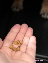 今日は、ちょこっとワンコご飯の記事うちに来た時は、ある程度しっかりドライフードを食べていたのだけれど、お留守番時の犬用ビスケットやパンでおいしいものを覚えたからか??外耳炎になった時の、抗生物質で胃腸が荒れたり、イライラがあってか?!ドライフードの食いつきが悪くなっていったの夏の間は食べる量が減る犬もいると聞いてはいたけれど、7月末くらいからずっと、無理やり食べさせないと、ほぼ食べないくらいの時期が続き月齢と体重から出したドックフードの量からしたら、半分も食べないとかは当たり前で朝夕それぞれ10グラムとか、どちらかしか食べない時も子犬なのに、栄養大丈夫かなぁと凄く心配な時期がありました(でもお散歩も運動もウキウキ元気だったので、病院へ!とまではいかなかったのだけれど^^;)お友達に教えてもらった日本製の缶詰を混ぜ混ぜしたり、手作りのチキン野菜スープをかけたり氷が好きなので(ガジガジおもちゃ的な^^;)氷や、凍らせたスープを混ぜたり、まぁ!!ドライフードを食べさるのに、かなり苦労していましたもともと食べていた子犬用のドライフードを継続してあげていたのですが(同じメーカーの子犬用2種類をローテーションしながら飽きないようにね)ドライフードを色々調べていくと、微妙な材料を使っているものもあったりして、増々不安になっちゃうのよね(動物を飼っている人って、必ず一度は調べて悩んだりしそうな気がする苦笑)より!安心安全なドライフードに切り替えていこう♪と、いくつかピックアップしていた時にワンコと一緒に入れるお店でHAROというドライフードの説明を受けたのその時は、日本に入ってきたばかり!ってことで知名度があまりなかったけれど、うちのワンコは食いつき悪いからなぁ試供品でもあれば使ってみたいけれどと私が言うと、食べなかった場合はメーカー保証される的な話だったのでちと、考えてたところだったのですよ(買った→食べない→メーカー保証手続きも、ちと面倒だなぁと思うダメ飼い主なので、購入までいってなかったのだけれど^^;)そしたら、しばらくネットやってなかったっていうのに、久し振りに見たモニプラさんでHAROのモニターやってる!!応募したら、ありがたく試させていただけることにヾ(´∀`)ノワーイ♪私が試した1歳未満の子犬用ドッグフードを、ちょこっと説明させていただくとチキンは正肉のみ副産物ミール原料不使用皮膚被毛と脳の健康維持に、DHA配合子犬の健康な発育と、妊娠授乳期の母犬の健康な毎日に適切な栄養バランス平たく食べやすい小粒サイズまぁ、下の3つは、ある程度安心の子犬成犬用ドライフードに似たような事が書いてあるかもしれないけれど重要なのは一番上!簡単にいうと、人がチッキンで調理するレベルのお肉やお魚を使っていて、怪しげなもの(一般的に言われる副産物ミールって人が食べられないような部位や捨てるような部位の食品とかなのょ)使ってないよー!ってことなのそんでもって!もともと肉食のワンコにとって、タンパク質が多いっていうのもとっても重要個人的には、ストレスによいクランベリー、ブルーベリー等が入ってることや、お肌に良いサーモン等々他の材料も結構満足だし、余計なものが含まれてないのも良いなぁと思ったのさて、後はうちのワガママ王子の食いつきが良ければ合格なんだけれど^o^;まずはHAROを一粒食べさせてみました(私がかいでも結構おいしそうな)しっかりチキンの香りがしてチキン好きだからいけるかなぁ?!と思いつつ警戒心が高いうえ、既存フードを食べさせるのに苦労していた時だったので、クンクンしても始めは食べなかったの警戒しながらも23度目には、ちゃんと食べてくれておっ!いつもと違うの用意したね!ヨシヨシ♪と、ワガママ王子が思ったかどうかは不明だけれど(苦笑)既存のフードに少しずつ混ぜて様子を見てもお腹を壊すこともなく、HAROを混ぜる率によって、ドライフードの食いつきが良くなってきた気がする?!ということで、思い切って、缶詰や野菜スープを混ぜるのをやめてみたところ、あれ?!ドライフードだけでも、ちゃんと食べてくれた!!単に、季節的に夏バテが終わって食欲が出てきた頃と、HAROを混ぜ始めた時期が重なっただけかもしれないけれど、今でもHAROは大好きなので、今は既存のドライフードを完食した時のご褒美として数粒あげたり♪(動いちゃってうまく撮れなくて^^;)おやつや躾のご褒美に、ジャーキーとか嗜好性の高いものではなく、HAROを与えています(夏バテ?!経験後、他のドライフードではふんっ!ってされちゃってご褒美にならないのょ)むふふん♪粒が小さいので、躾のご褒美として最適でシャキーン!!と指示に従ってくれます(笑)公園で合うお友達ワンコ(小麦他アレルギーあり成犬)ママさんが「おやつちっちゃぁー!!」と、かなり驚いてましたから、一般的にも粒は小さいと思います(笑)でも、それが子犬には食べやすいのよね^^小麦が入ってないし、粒が大きい物、