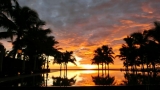 ベトナム最後の日の朝ですやっぱり朝早くに目が覚めました 朝焼けです 空が紫に染まるのを見るのが大好きなのですが、 こんな鮮明な紫は、初めてでし