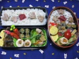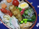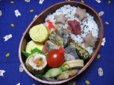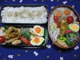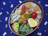 こんばんは 今日も一日無事終了しました 今日のお弁当は 1 秋刀魚のから揚げ 2 揚げの2色巻き 3 ほうれん草の海苔巻き 4 出し巻き卵 5 筍と豚ばら肉のオイスターソース炒め 6 プチトマト 7 ソーセージ 梅干 秋刀魚のから揚げ 揚げの2色巻き 今回はひき肉を使わず (コネコネするのが面倒だったので) 薄揚げに豚肉を乗せて人参とインゲンを巻いて甘辛く煮ました) ほうれん草の海苔巻き 今日のメインは秋刀魚のから揚げにする予定だったんですが、 出し巻き卵も巻きすで丸くしてしまってから、はたと気づきました ばっかやん 仕方が無いので題名を巻き物弁当に変更しました 主人の ↓ 梅干がいらなかったかなあ せっかくハートのソーセージを型抜きしてタッパーに入れておいたのに 忘れて先に梅干しをいれたものだから、アカンやんと思った時にはすでに 遅く梅干しを取ったらきっと赤が残るからそのままにしておきました プチトマトが1個しかなかったので主人用には赤のウィンナーを入れました 贅沢になったのか味はうーんなので最近は余り買わないんですが 真っ赤な色はお弁当に映えますね 生協さんのはソーセージは全部地味な色です(;^_^A 2人分出来上がり 今日も美味しく頂きました ランキングに参加しています♪ 毎日の励みになります 良かったらワンクリックの応援をお願いします ↓ ↓ ↓ いつもありがとうございます モニプラさんに参加しています 余ったご飯で手作りおせんべい★【ベーカリー(Bakery)】 続きを見る