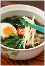 すず「あら、これは何かしら?」すずちゃん、写真撮影したいからそこどいていただけませんか?今日の昼御飯は、寒天本舗さんの【寒天ラーメン】です麺は糸寒天(0kcal)具は、わかめキャベツねぎ(3kcal)スープは醤油味(96kcal)合計99kcalですむふふさっそく作ってみましょう器にスープ、寒天麺、具を入れて熱湯(90度以上)約400mlを注いで1分たったら、よくかき混ぜますはい、出来上がり簡単に出来てしまうのが嬉しいおやつに食べるならこれだけでも十分なのですが、今日は昼御飯用なのでちょっと具を足してみましたわかめ茹でた小松菜にんじんしめじゆで卵ごま撮影後に青ネギものせました寒天麺は、長さが短めかな?ラーメンのようにチュルチュルと喉ごしよく豪快にすすって食べるというよりは具沢山の醤油スープを食べている感じですスープは寒天麺に絡みやすいようにするためか少し濃いめでしたが、味のついていない茹で野菜をたくさんトッピングしたのでちょうどよい感じになりました量は、これだけで足りるのかしら?と思ったのですが心配することなかれ!お腹いっぱいになりましたよ!スープが濃い目なので、茹で野菜などの具を多めにして、スープは全部飲み干さずつけ麺感覚で食べるとダイエット食にいいと思います(ほとんどがスープのカロリーなので)【寒天らーめん】は、醤油の他にとんから味噌(107kcal)もありますちょっと気になる(^_^)寒天本舗ファンサイト参加中 続きを見る