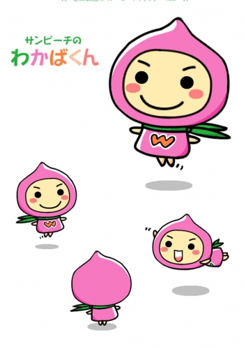 私たちの農園の桃のゆるキャラです 桃の形をしたピンクのトンガリ頭巾がポイントです ゆるキャラに癒されています