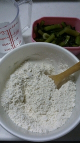 今日は野沢菜と小麦粉で…
