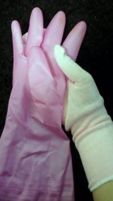 以前モニプラで応募した 綿製手袋「コットン手袋」を、ゴム手袋ビニール手袋のインナー(下ばき)に使ってみませんか? という企画に当選したため、家に到