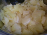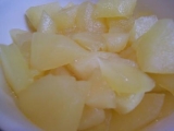 2016年1月20日りんごをたくさんいただく機会がありました折角なので、一部をジャムにしてみました(^_^)まず、りんご4個の皮を剥いて、いちょう切りにしますこれは、塩水につけていますりんごの重量の20%の砂糖をりんごに振ります今回は、リンゴが約700gだったので、砂糖は140g使いました全体を混ぜて、火にかけました水分がでてきますひたひたになりましたアクをとって、20分くらい煮ます煮りん 続きを見る ['close']