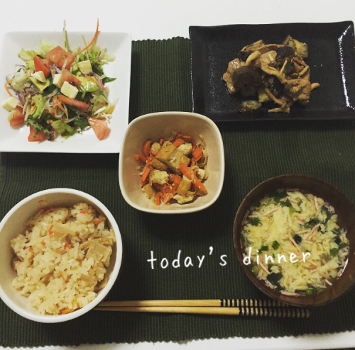 最近太ってきた4歳の娘とパパと私の家族3人笑 おかずを増やし、お腹膨らませる作戦です! ご飯はパパ用に少し多め汗