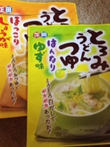 正田醤油のとろみうどんつゆ、はんなりゆず味を頂きました本当に温まります(^^)柑橘類のゆず味もマイルドで、美味しく食べやすいですパッケージデザイ