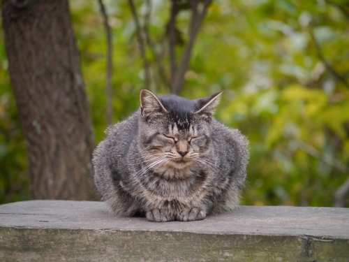 秋の公園で紅葉の撮影をしてたらいつの間にか、猫がたくさん集まってきました そのうちの一匹がうとうとしてたので思わず一枚^^
