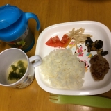 保育園で聞いたらテラスで履く靴とお庭で履く靴と居るらしい!!先生は『すぐに履けなくなっちゃうのにゴメンねぇー』って言ってくれたんだけどサンダルとかじゃなくちゃんとした靴じゃなきゃダメらしい保育園、思った以上にカナリお金かかるなぁ服も可愛くて買ってあげるとかは別としてきっと倍くらい必要だもんねぇまぁ仕方ないまた買い足しましょさて、息子くんご飯ご飯煮物鯵の開きレタス玉子のコンソメサッと煮スープこの日はご飯の支度が遅くて息子くんは保育園でおやつたべたのにお家でもおせんべいたべたからご飯少し残したけどスープは相変わらず自分でもって上手に飲んでました◎こちらが手を添えてると逆にブるんブルんと手を振りほどき中のお味噌汁とかこぼすので最近は渡して飲ませてますてか、渡すのも嫌がるから自分で取らせてる!ごはんお味噌汁ハンバーグナスとエノキソテーとまとそして白米ばかり残すので納豆も後からつけたししめはゼリーでした途中でごちそうさまって手合わせるんだよね!まだたべ終わってないくせに 笑珍しくランチョンマットとか敷いてみた ご飯チキンスープボイルチキンアスパラガスのソテー茹でキャベツ冷奴ニューサマーオレンジとキウイトマトと人参がない日は何処からいきますか??と思ったら珍しくチキンに手を出したんだけど食感??ご不満だったかべぇご飯もべぇアスパラべぇキャベツべぇたべたのは豆腐と果物とスープご飯とかその他おかずはちょろちょろつまんだだけご飯も結構下に技と落としてた…>_