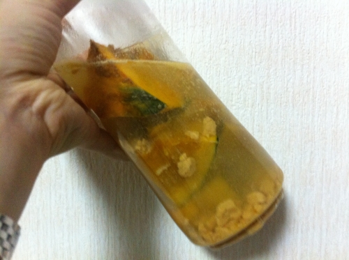 かぼちゃのポタージュ:かぼちゃ1/16個、人参半分、スキムミルク1包、コンソメ小さじ1より気持ち多め、水300cc 野菜を一口サイズに切ってシリコンスチーマーに入れる蒸し野菜 続きを見る