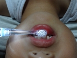 こんにちは 今日は早速先日お届けのあった子供用電動歯ブラシの レポしたいと思いますっ 今回はbabyhealthcareさんから届けて頂いた 子供用音波電動歯ブラシプチブルですっ モニター商品がとどいた時の記事はコチラですっ http//blogsyahoocojp/atti_love_dee/65385285html コチラは子供用音波電動歯ブラシっ 今だと電動歯ブラシを使われている方がほとんどなんでしょうね ちなみに我が家は皆未だに、手動式の歯ブラシです(笑) コチラの歯ブラシは、0歳でも前歯が映えはじめたら使える歯ブラシですっ 電池式で単4形のアルカリ乾電池1個有ればスグに使えますっ そして振動数は…1分間に16000回です 毛先は細く柔らかい為、小さな子供の歯を磨くには 負担も少なさそうで使いやすそうですょ 商品のモニターが決まってから殿に『光る歯ブラシが来るよっ』…と伝えていたところ まだかまだか…と心待ちにしていたようです(笑) 本体のボタンを1度押すとレインボーライトがキラキラ光りはじめますっ 更にもう1度押すとライトは白になりブルブル振動し始めますっ ヘッドの部分がクリアになってている為、LEDのライトが小さい殿のお口の中まで 明るく照らしてくれるため隅々までチェックしながら 歯磨きをする事が出来ますっ(朝の歯磨き) 朝なのにシッカリ狭いお口の中を照らしてくれてるでしょ ブラシは少し小さ目に感じますが子供の歯は勿論 お口の中も小さいのでママも普段、殿に買う歯ブラシは 気持ち小さ目の物を買っていますっ ちなみにコチラの歯ブラシは毛先はフラットタイプです このプチブルは歯の裏側を磨くのも楽ちんですっ ちなみに… 30秒ごとにブルっ…と合図してくれる機能も付いているので ついつい熱が入りすぎて磨きすぎの防止にもなり 親としても歯磨きの目安にもなりますっ いつもなら『やっつけ歯ブラシ』…の殿… シャシャシャ…と磨いてシッカリ歯ブラシできてない事の多い殿ですが このプチブルが届いてからは 自分でお口の中を鏡でチェックしながら歯磨きをしてくれていますっ(笑) 歯ブラシ1本でここまで変わるとは…(笑) 普段から虫歯には気を付けていますが… 本当に子供の歯は虫歯になり易いっ!!! 殿も今までに数回歯医者さんに通った事がありますが 今の所、1か所の虫歯に何度も通うことなく 全て1つの虫歯に対して1回で治療を終えてきてますが 本当に神経を使いますっ なので使ってみてママが1番いいなぁ…と思ったのは 子供の歯を磨く時に、お口の中がライトで照らされているから 隅々までチェックしながら歯磨きをする事が出来る事 …さらに… また、ブラシ自体も柔らかく子供の歯や歯茎に対して 過剰な負担になりづらそうなのでその点も高評価っですっ 替えの歯ブラシが1個付いており、 リングの色が違う為、兄弟で使う事が出来るのも便利ですね 上手に歯を磨く方法を教えるのって本当に大変なんですが コレなら殿でも楽し学べそうです ブラシ部分が柔らかい事もあり微妙な歯磨きの際の力加減も 学べるのでこれを機会に 殿には楽しく上手な歯磨きの仕方を覚えてもらおうと思いますっ http//moniplajp/bl_rd/iid69807978955ada9d371db0/m50e69437482ad/k1/s0/ 続きを見る