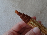 こんにちわ 少し前にモニプラさんに送っていただいたシャチハタ株式会社さんの ファニチャーマーカーを使ってみたのでレポしますっ 商品がお届けされたときの記事はコチラっ http//blogsyahoocojp/atti_love_dee/64993311html コチラの商品はフローリングや家具など…チョット傷がついてしまったところを チョイ塗りして傷を目立たなくする…と言うものです マーカーの色は全部で4色 この4色があればどんなキズも目立たなく出来そうですねっ …って言う事で実際に使ってみましたっ ママが家の中で1番気になっていたキズ…と言えば… これです… コレコレっ(笑) 殿がまだ小さい時にやたらコノ収納ドアを開ける開ける… …でも、色んな物がしまってあるし誤飲でもしたら大変…と 100均から購入してきたドアを固定するヤツで対策したら… 開けようと殿がドアと格闘した末に付いたキズ… 何度か100均にある似たような商品を眺めたことがあったけど イマイチ信用できなくて今まで試してませんでした(笑) ですが今回4色あるファニチャーマーカーを使って塗ってみました 使ってみたのはコチラの2色っ ペン先はこんな形にカットされているので小さなキズから、大きめのキズまで塗り易そうです 最初は黄色が強いメイプル…そして明るめの茶色、オークの順に使用っ そうしたら、あれだけ目立ていた曲線の傷が目立たなくなりました 写真ではマーカーで塗った所が少し浮いているように見えかもしれませんが 実際は全く分からない状態ですっ 今までは何かと目についていたキズですがこれで気にせずいられそうです …とは言え、最近殿がフローリングン上をトミカや先日Xmasにプレゼントした 大きな変形型ロボットをガンガン走らせて遊ぶように…(笑) コレカラこのファニチャーマーカーに沢山助けて頂く事が多くなりそうです…(笑) http//moniplajp/bl_rd/iid1703783263546c3a603368b/m50e69437482ad/k1/s0/ 続きを見る ['close']